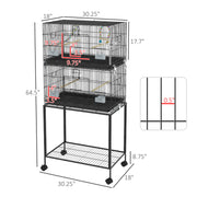 Double Stackable Bird Cage on Wheels w/ Stand, for Canaries