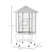 77" Flight Bird Cage Hexagon Covered Canopy Portable Aviary With Storage